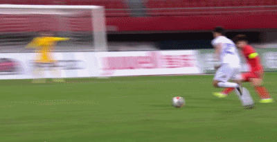 第33分钟,蒯纪闻右路传中,对手解围差点踢进自家球门